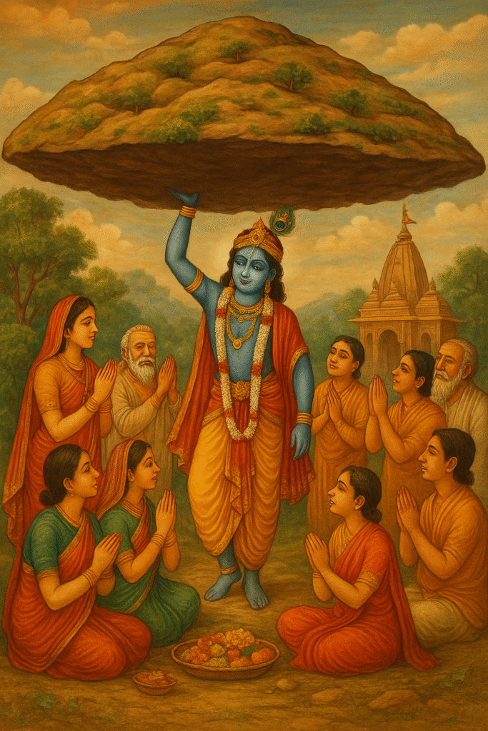 पौराणिक कथा के अनुसार, जब भगवान श्रीकृष्ण ने देखा कि वृंदावन के लोग वर्षा के देवता इंद्र की पूजा करते हैं, तो उन्होंने उन्हें समझाया कि असली पालनकर्ता तो प्रकृति और गोवर्धन पर्वत हैं, जिनसे उन्हें अन्न, जल और आश्रय मिलता है।