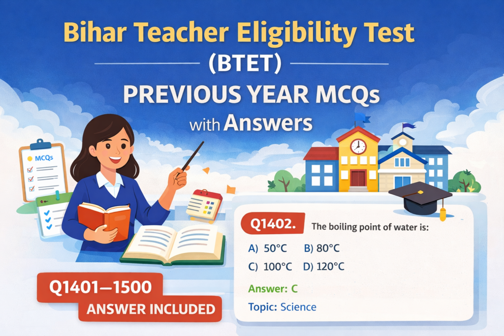 THE INFORMATION AND MULTIPLE-CHOICE QUESTIONS (MCQS) PROVIDED ON THIS WEBSITE FOR BIHAR TET PREVIOUS YEAR MCQS WITH ANSWERS ARE PREPARED SOLELY FOR EDUCATIONAL AND PRACTICE PURPOSES. WHILE EVERY EFFORT HAS BEEN MADE TO ENSURE THE ACCURACY AND RELIABILITY OF THE CONTENT, THE WEBSITE OWNER DOES NOT GUARANTEE THE COMPLETENESS, CORRECTNESS OR AUTHENTICITY OF THE QUESTIONS, ANSWERS OR EXPLANATIONS.
